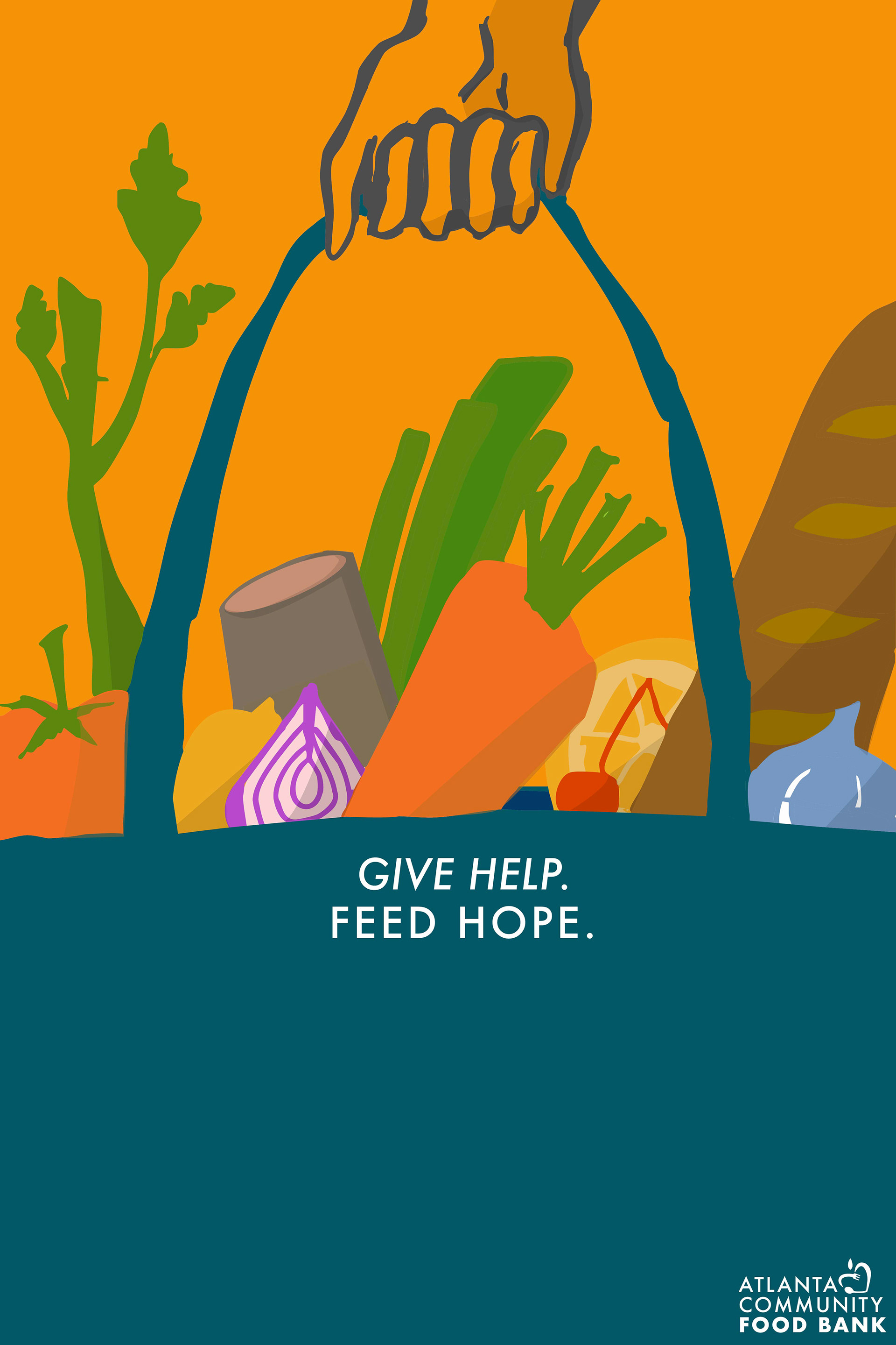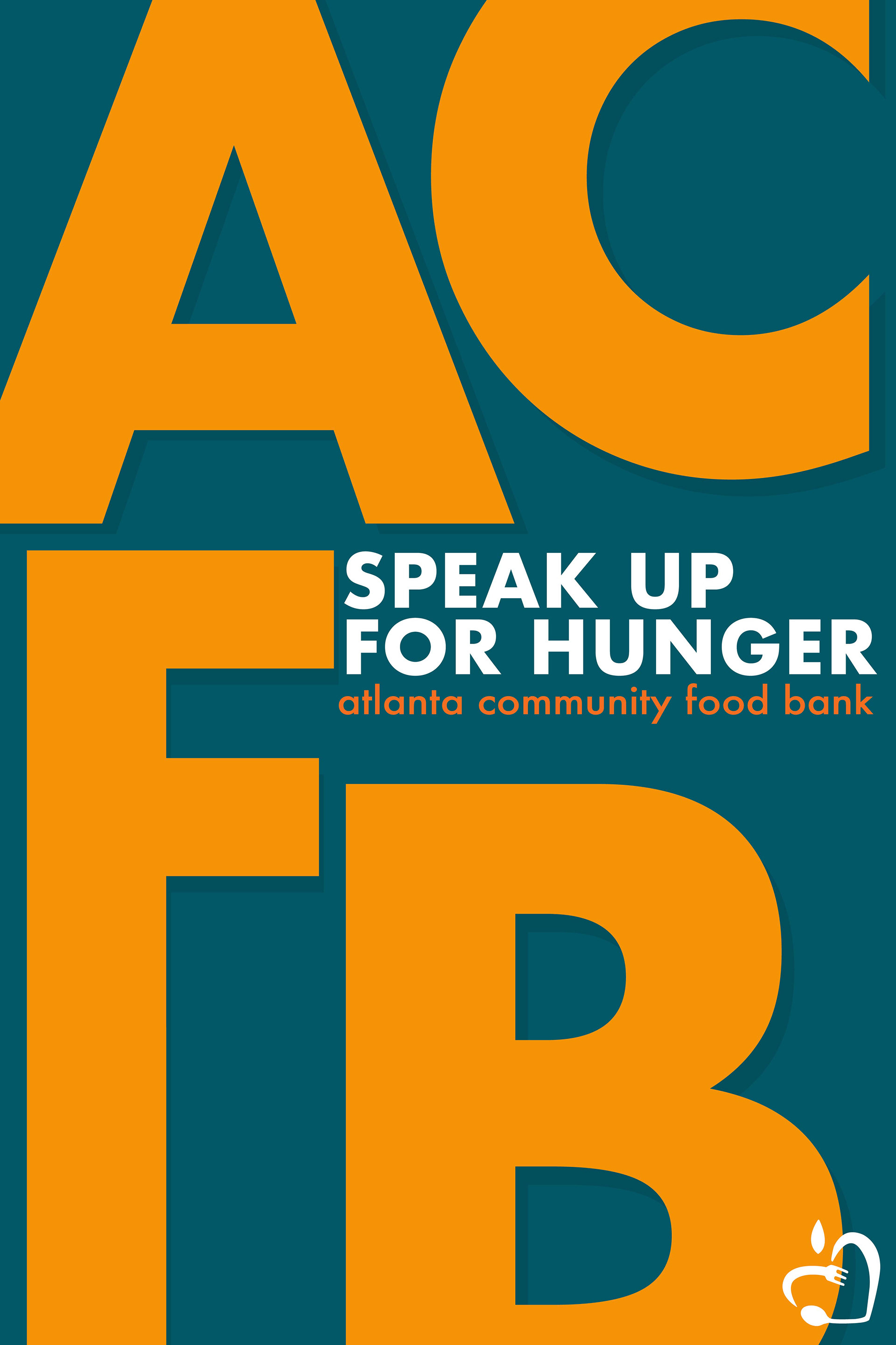 Redesigned a logo and accompanying posters for the non profit organization, Atlanta Community Food Bank. Kept their color palette from their original brand identity redesigned their peach icon into a heart shaped motif with utensils and a accessible type face.